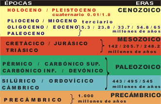 Los colores marcan la diferencia entre las Eras Geológicas.